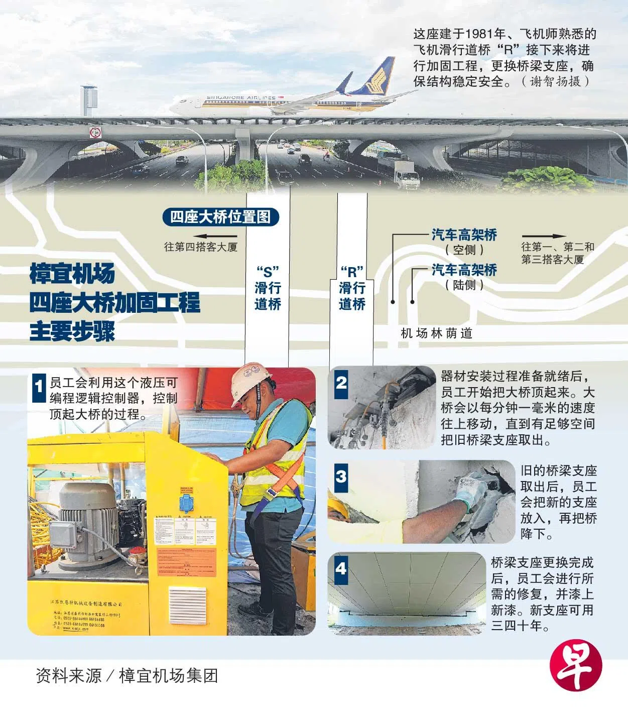 大桥加固工程的筹划工作今年初展开,9月13日开始施工。工程展开前,樟宜机场集团已通知所有利益相关者,包括航空公司和地勤业者,将工程纳入运作安排中。