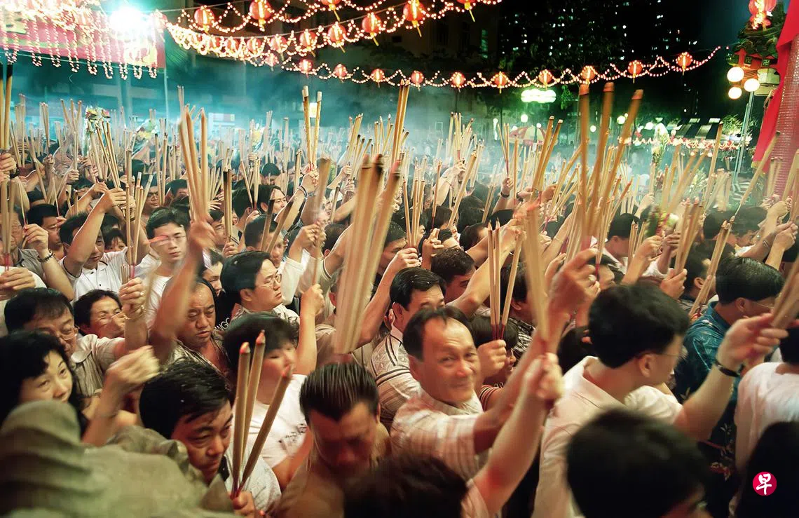 2001的农历新年,逾万名善男信女除夕午夜前蜂拥到四马路观音堂,静待时钟指向12时的一刹那,朝观音堂大门迈进,为新的一年祈福。