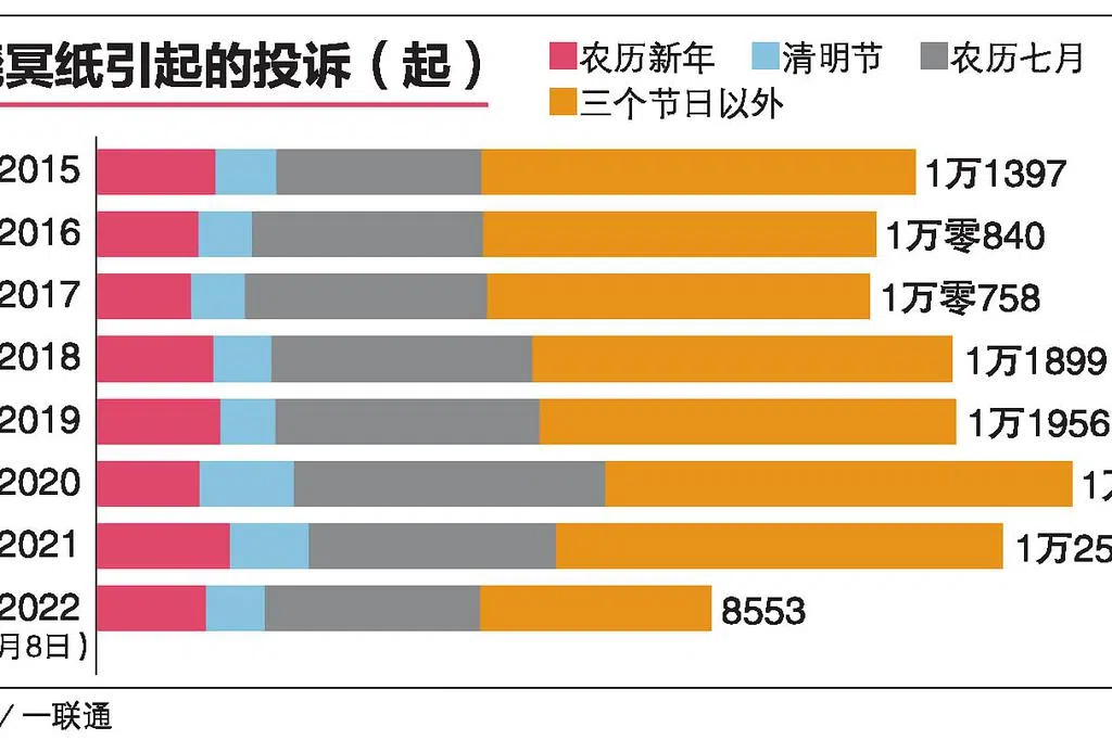 通过成立焚烧冥纸规范行动联盟和两年的公共教育运动,社区事务署今年农历七月接获的焚烧冥纸投诉,同比下跌一成,与2021年相比则减少了21.5%。