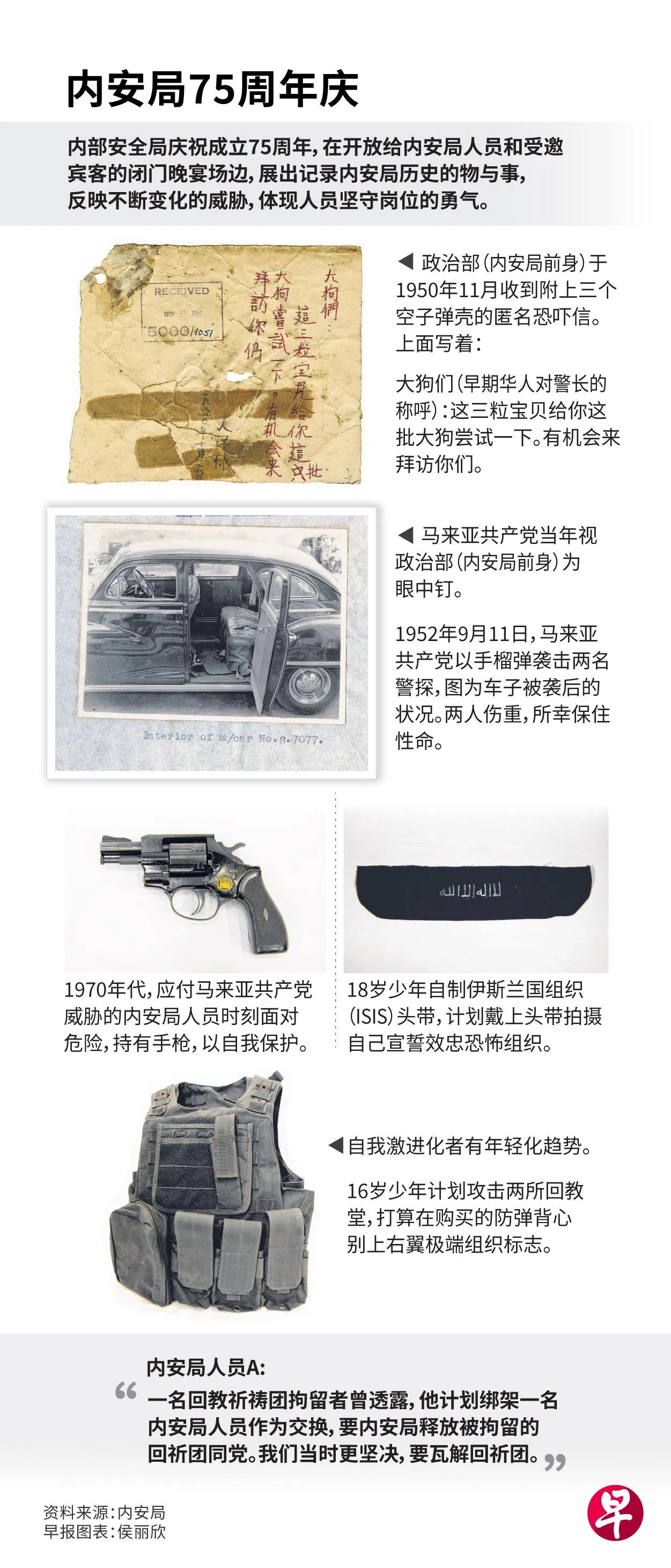 如今,传统威胁如恐怖主义、颠覆行动、极端主义和间谍活动依然存在。尚穆根说,面对不断演变的外部环境和内部隐患,未来还会出现新的威胁。内安局将继续同来自内政团队、社区和全岛各地的合作伙伴一起履行自己的使命,抵御内忧外患,保护国内安全。