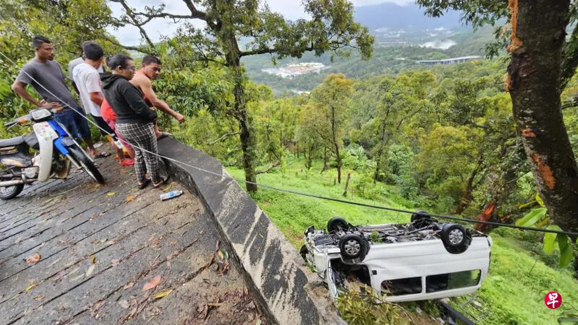 《新明日报》之前报道,9月24日晚上8时许在马来西亚槟城浮罗山背。当时载着10名狮城游客的客货车失控翻入20尺深山坡,导致62岁狮城妇李桂艳(译音)当场身亡,其余9人受伤。