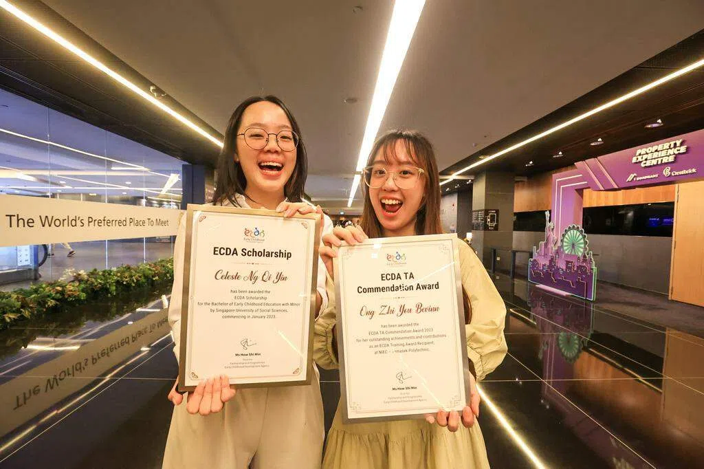 幼培署星期六在新达城会展中心举办的学前教育庆祝会2023活动上颁发奖项,共有11个学前教育中心和12人获奖。