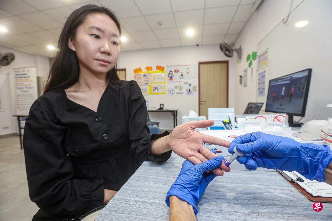 该中心为武吉巴督东符合条件居民提供免费糖化血红蛋白(HbA1C)指尖采血检测,测前无需禁食,可随时进行,五分钟内可得知是否患上糖尿病。此外,中心还提供仪器测试高血压、身体质量指数(BMI)、视力测试等服务。