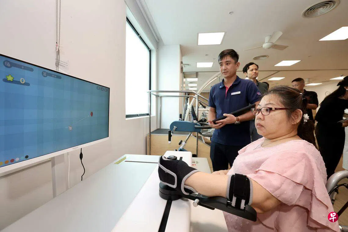 将互动游戏融入中风病患复健训练,中风援助中心引进新科技设备帮助病患进行物理治疗。