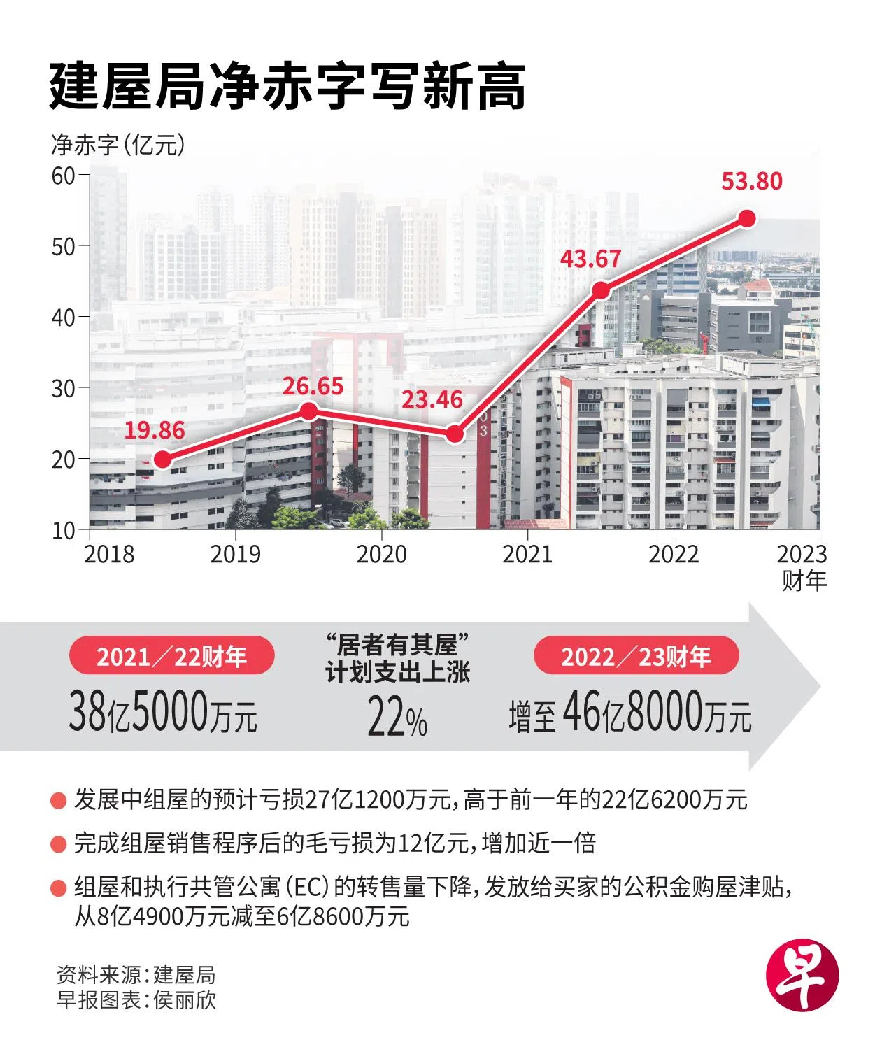 建屋发展局加快增建预购组屋,也增加了发放给购屋者的津贴,使得它上个财政年度的净赤字上升逾20%,达53亿8000万元,写下历史新高。