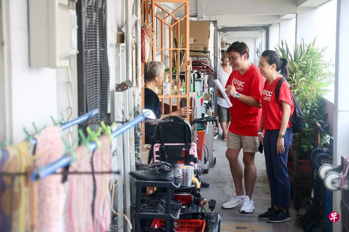 每月大约会有100名华侨银行志愿者亲自探访年长者,了解他们的生活近况,鼓励他们参与由华侨银行和关怀机构组织的社区活动。