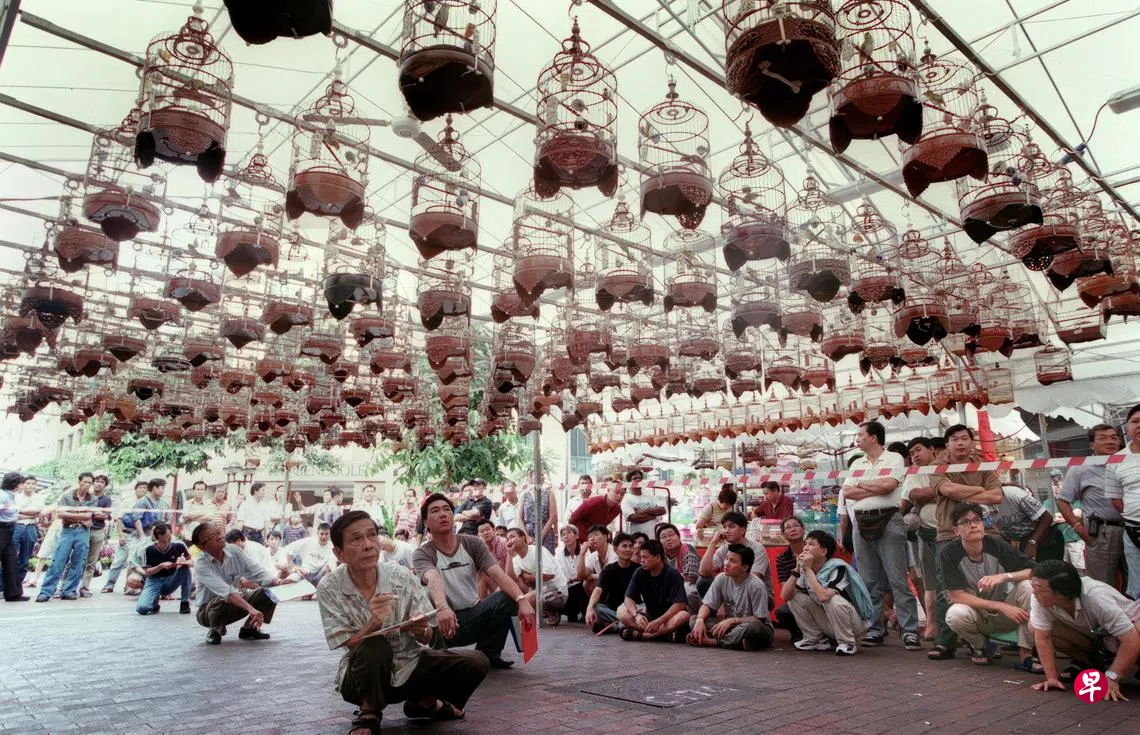 2001年1月14日清晨,雅柏商业中心旁的广场异常热闹,百鸟争鸣,主人希望他们饲养的鸟儿能一鸣惊人,成为新世纪鸟王。只见评判蹲在笼子底下,聚精会神地聆听鸟语,哪只鸟五音不全,哪只音阶准确,都逃不过他们的耳朵。
