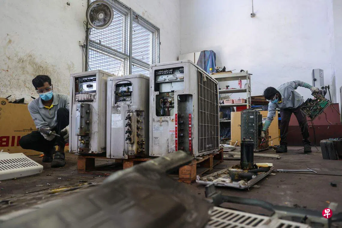 新加坡每年产生6万公吨电子垃圾,2021年,政府推出制造商延伸责任(Extended Producer Responsibility,简称EPR)制度,规定电子产品制造及进口商须妥善处理和回收电子垃圾。丰城(Gain City)被指定为本地两家冷气回收商之一。
