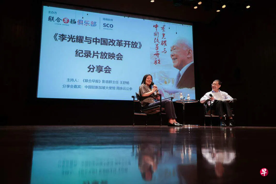 由联合早报俱乐部举办的《李光耀与中国改革开放》纪录片放映会与分享会星期三(11月8日)晚上在新加坡大会堂举行。为纪念建国总理李光耀百岁冥诞,以及中国改革开放45周年,中国驻新加坡大使馆与深圳卫视联手制作了这部纪录片。