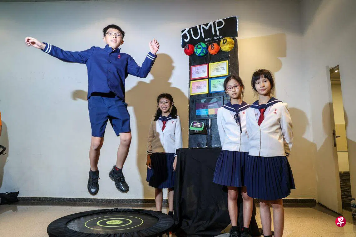 从游戏厅里的游戏机获得灵感,来自南侨小学的五年级学生凭借倡导人们保持健康生活习惯的蹦跳问答游戏机模型,夺得全国小学设计思维挑战赛前三强。