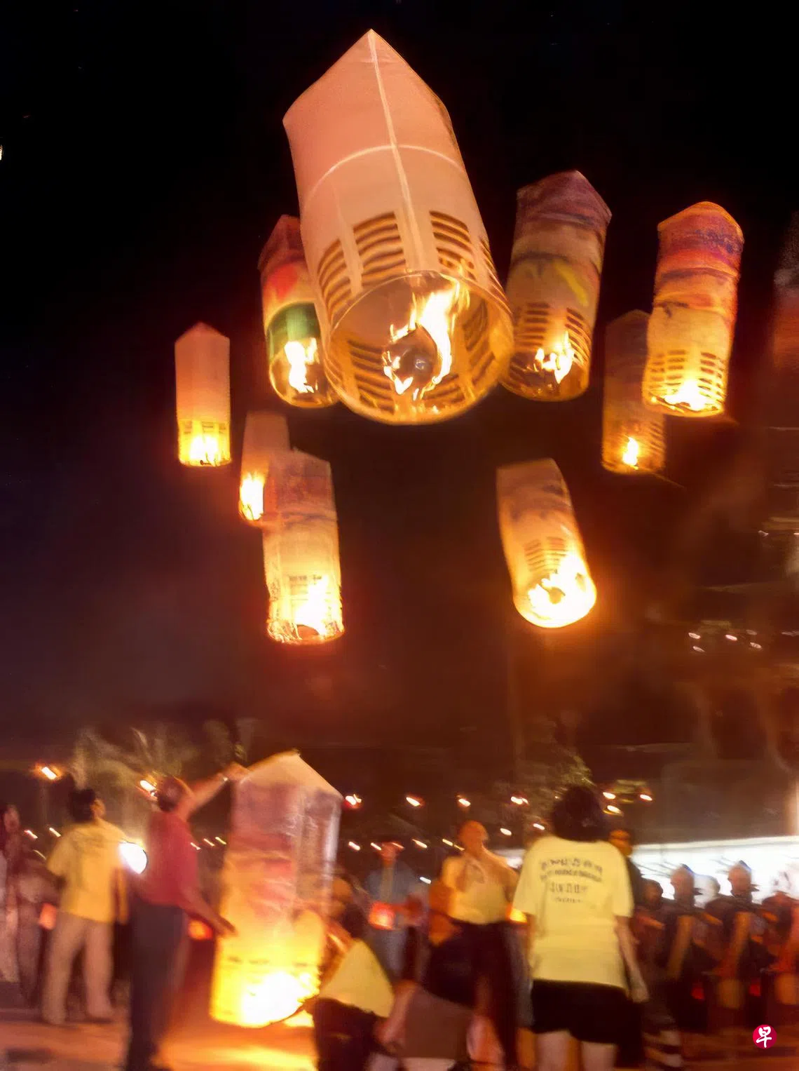 这场“高飘孔明灯中秋晚会”共吸引约2000人出席。有几次,孔明灯差点无法飞空,周围的观众捏了把冷汗。当孔明灯成功飘上天时,观众都热烈喝采。