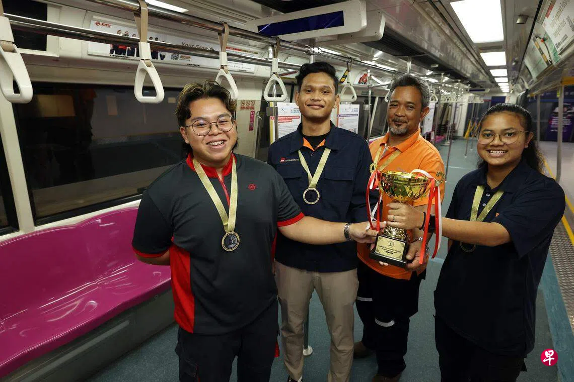由两名工艺教育学院学生、一名新捷运技工,以及一名SMRT助理工程师组成的四人老中青团队,成功在首届地铁技能大挑战电力组别脱颖而出,赢得5000元奖金。作为唯一女性组员,21岁的苏兹安娜(Suziana Akasha)已取得国家工教局证书,但她准备继续进修,报读高级国家工艺教育局证书课程。