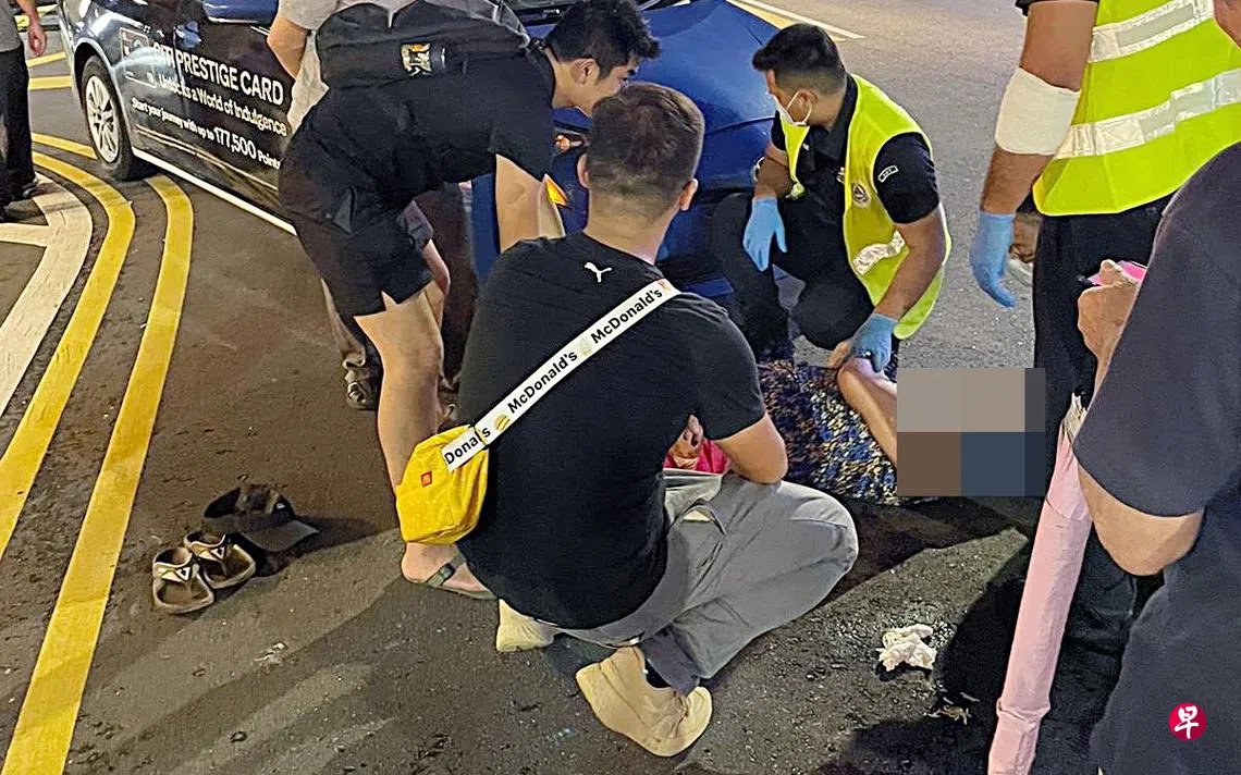 德士司机转弯时撞倒两名路人,76岁老翁和74岁老妇送院。