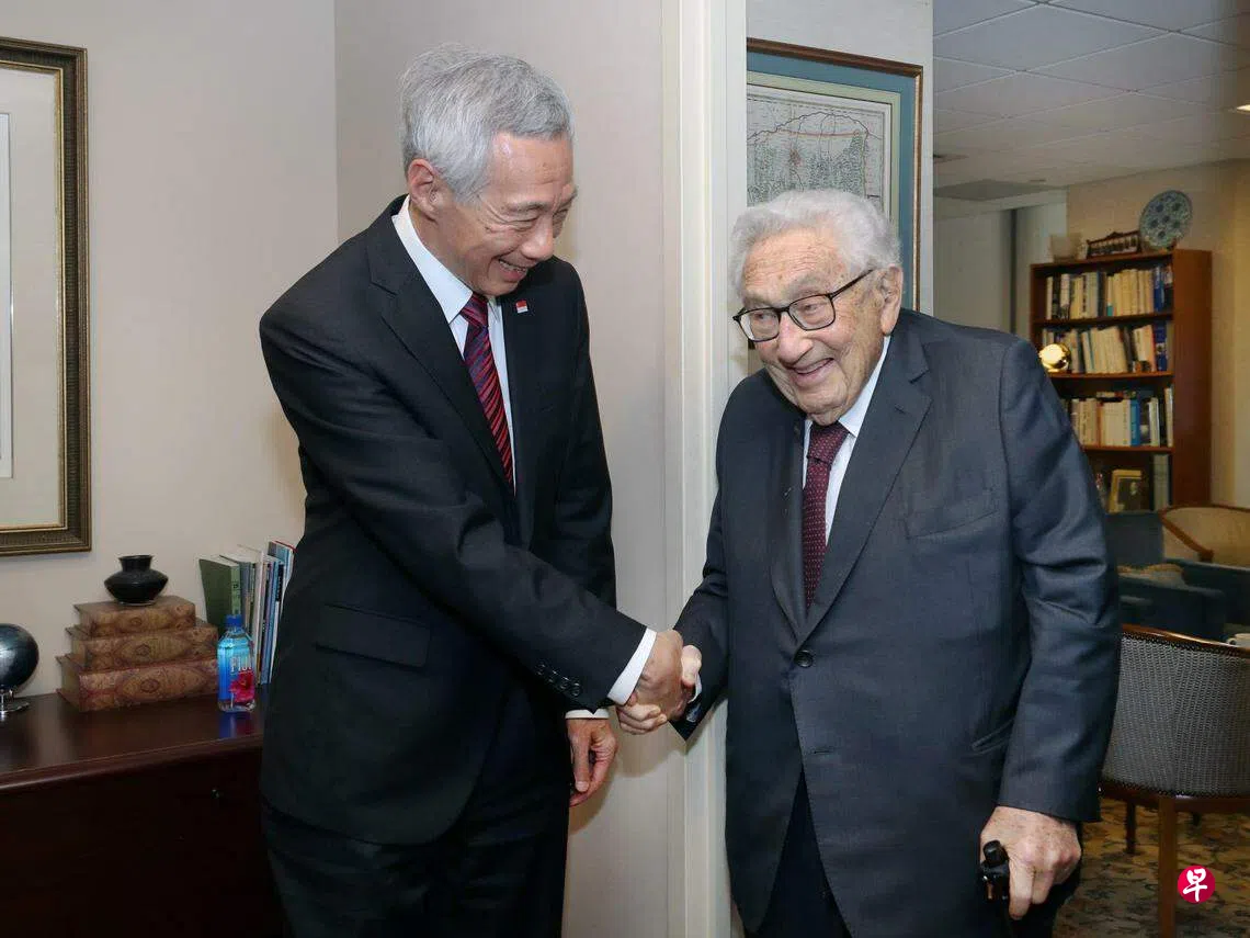 李显龙总理星期四(11月30日)晚间在脸书贴文,对美国前国务卿基辛格逝世表达了深切的悲伤,并盛赞他是一名无可匹比的外交家、真正的政治家,具有远见卓识。