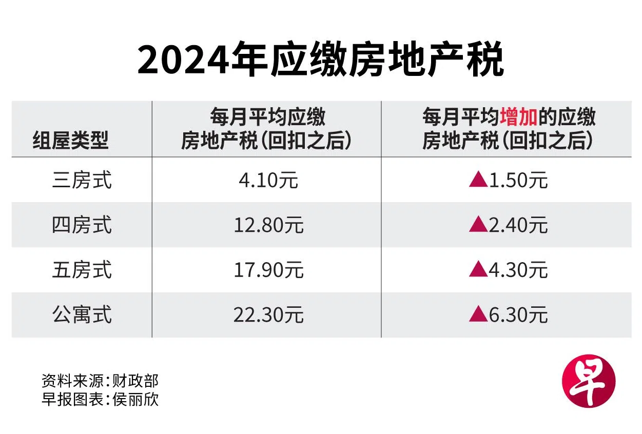 “房地产税率和年值上调将影响非自住型屋主,他们无法获得回扣,而且年值超过7万元的豪华公寓较大型单位和有地住宅(如优质洋房)受影响较大。”