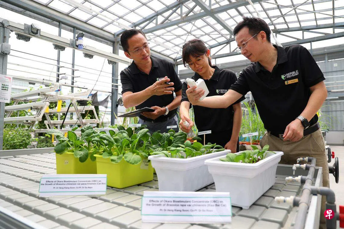 王强顺指出,新加坡每天产生30公吨的湿豆渣,其中大部分被丢弃或回收用作动物饲料,这项研发正好可“变废为宝”,减少浪费。在共和理工学院的实验室环境中,一公斤豆渣可产生800毫升至一公升的植物生长促进剂。