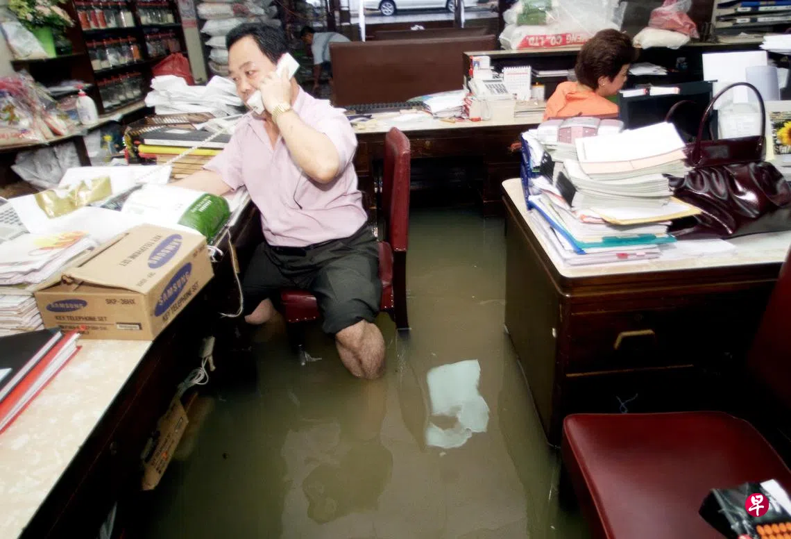 驳船码头附近嘉宾达街(Carpenter Street)的一名店主当时受访时说,这是50年来他遇过最严重的一次淹水。照片中,这条街上的商行“四海栈”仍然照常营业,职员们虽然腿都泡在水中,但仍在工作。
