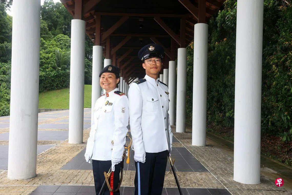 同样完成见习军官课程的国民服役人员陈梽湧(19岁)是典礼的仪仗队指挥官之一,他带领46名来自海陆空三军的队员,与另外九个仪仗队联合呈献了一场完美的典礼。