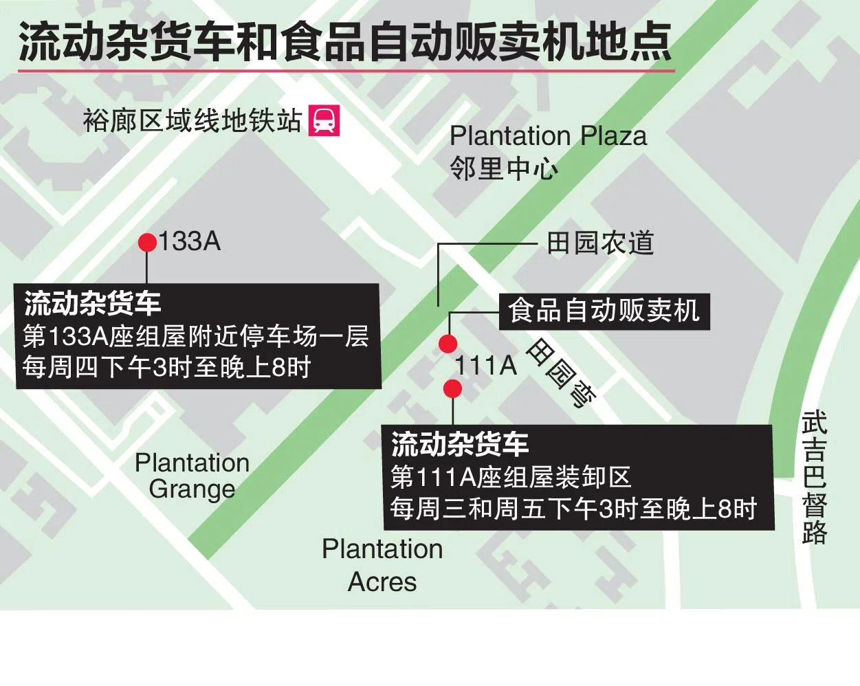 流动杂货车将运营到明年第二季,届时,邻里中心内的超市预计将投入运作。根据规划,这两个组屋项目的住户步行五到10分钟可到达Plantation Plaza邻里中心,内有超市、食阁、餐饮店、诊所、商店和增益中心。