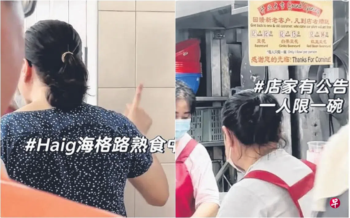 网民在社交媒体平台《小红书》发布的视频显示,一名穿着黑色上衣的妇女拿了免费豆花后,直接放在桌上,接着继续排队。之后,该名妇女还与一名男子大声说话,争论有关于免费豆花的事情。