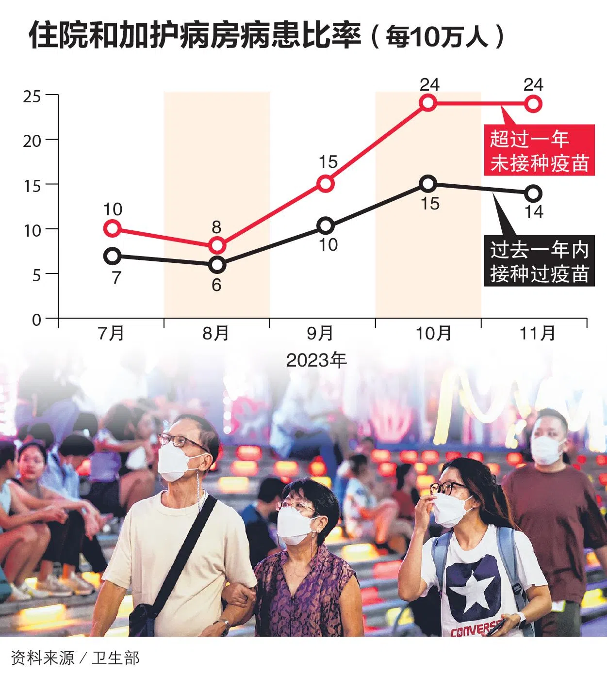 卫生部强调,今年7月1日至11月30日的数据显示,过去一年里没有接种追加剂的群体,住进医院和加护病房的病患比率为每10万人有16.2人,比已接种者的比率多出1.6倍。也就是说,没有接种追加剂者面对的重症风险更大。
