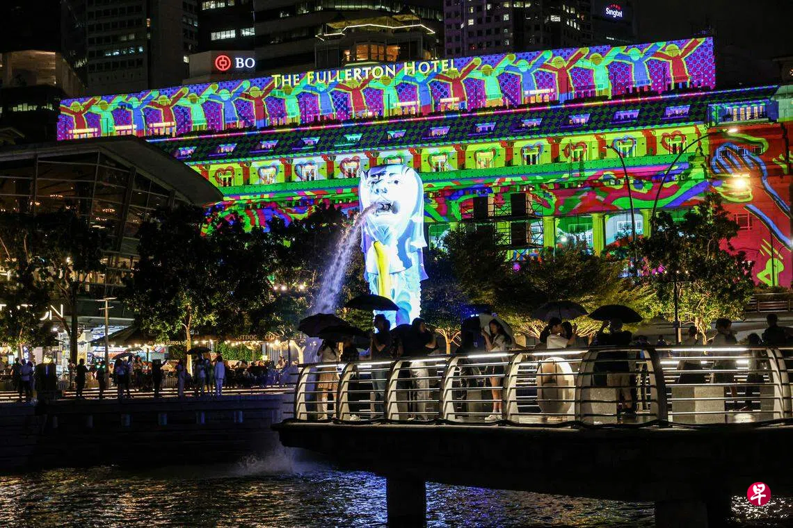 今年的灯光投影以“点亮生活”(Brightening Lives)为主题,在鱼尾狮雕像、新加坡富丽敦酒店和滨海湾金沙艺术科学博物馆前呈现。