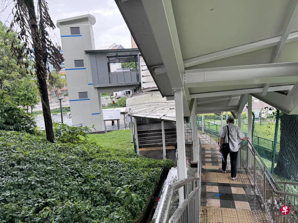 惹兰固哥组屋区建于山坡上梯级多,居民指尽管天桥增设电梯但却形同虚设,搭了电梯还得上下51阶梯级,有八旬老汉说,宁可耗20分钟爬49阶梯级直接到住家楼下。