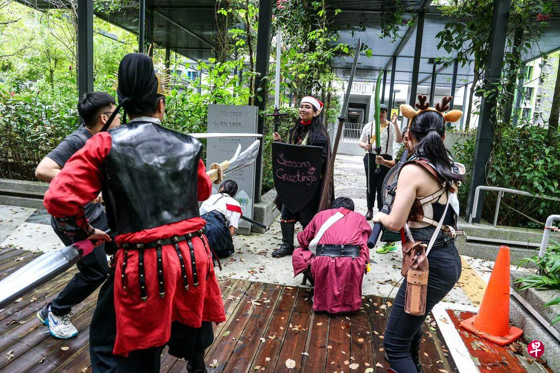 化身圣诞精灵、圣诞麋鹿以及各种神话故事角色,玩家们身穿别出心裁的装扮一同玩闯关游戏,为比达达利组屋区增添了佳节氛围。