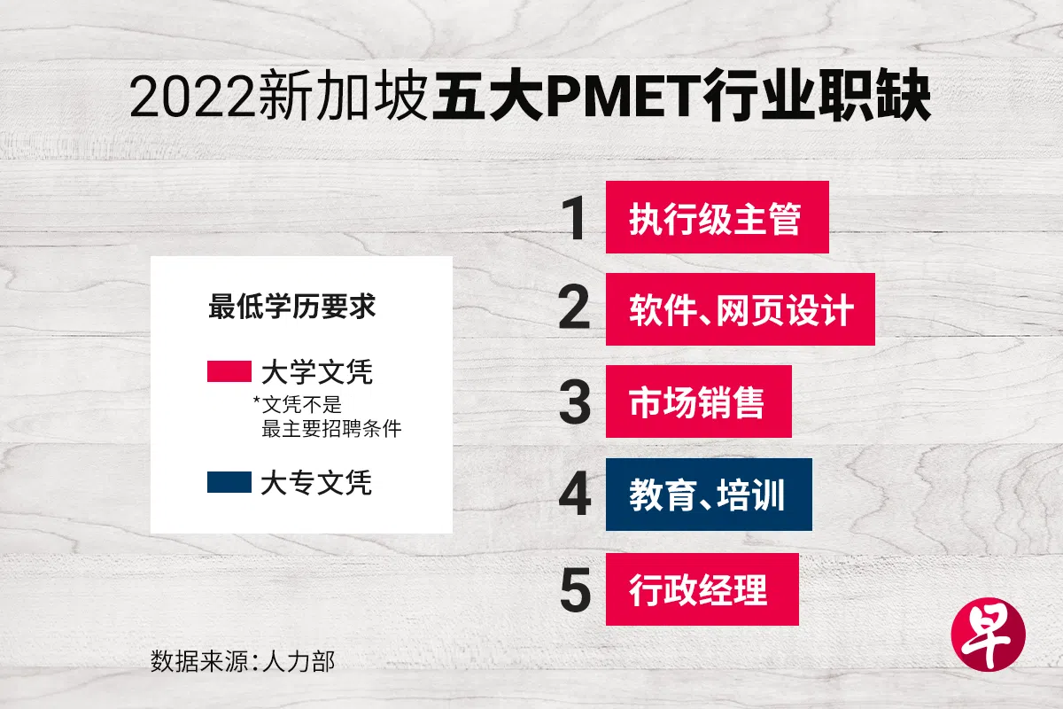 纵观新加坡五大PMET行业职缺,虽然文凭不是最主要的招聘条件,但最低学历要求仍然是大学文凭。