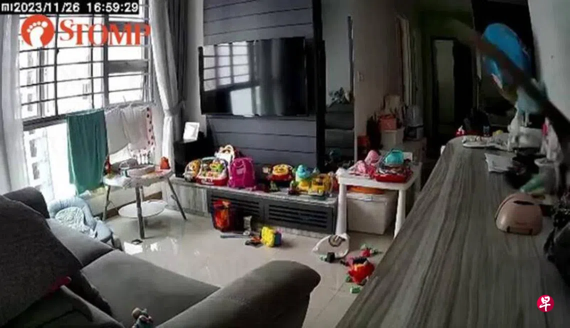 根据电眼画面显示,事故发生在下午4时59分左右,吊扇发出几次声响后,扇叶就突然飞脱,掉在客厅四周。