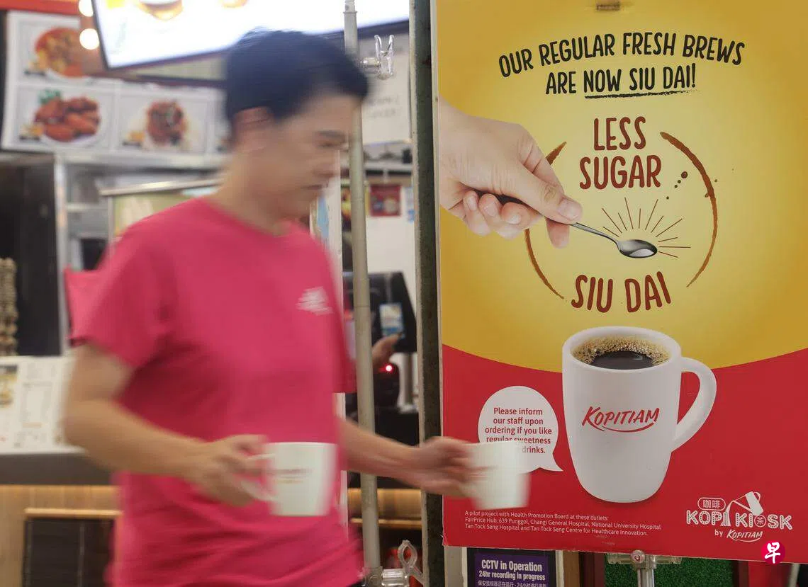 配合饮料营养等级标签措施开始实行,保健促进局推出了“默认少糖”运动,即餐饮业的咖啡茶水一律少糖,除非顾客有特别要求。至少已有三家餐饮运营商表示有意加入,其中连锁餐饮品牌Kopitiam已经在一些咖啡店与食阁落实。