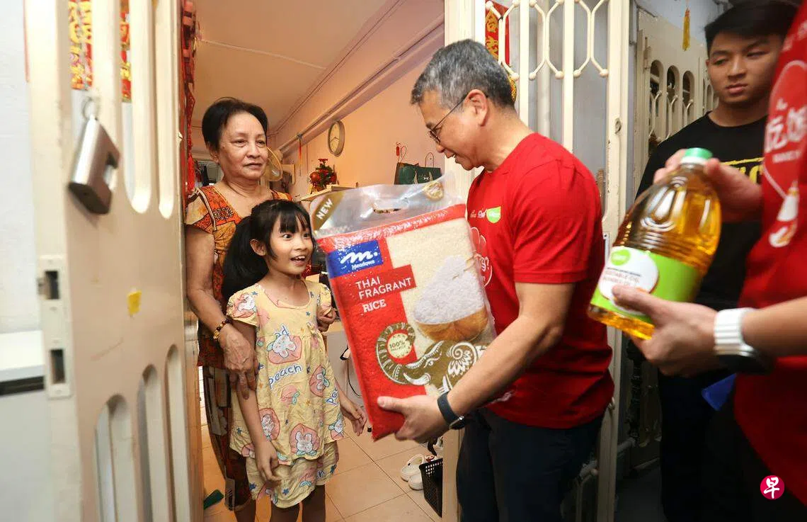 文化、社区及青年部长兼律政部第二部长唐振辉星期三下午与慈善团体及社区志愿者一起,将大米和食用油分发给有需要的家庭。