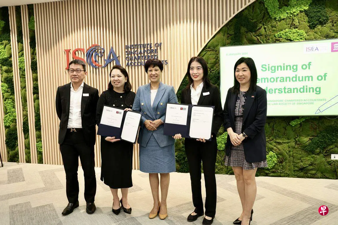 星期五(1月5日)上午,新加坡特许会计师协会(Institute of Singapore Chartered Accountants,简称ISCA)与新加坡律师公会签署谅解备忘录,并宣布合作推出一项为期三年的计划,共同建立一个强大的专业服务社区,为本地和区域内的企业提供可持续发展领域的服务。