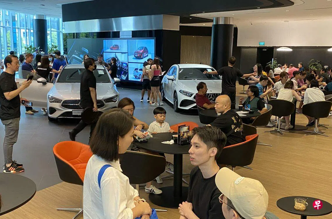 郑景瀚受访时正在现代汽车新加坡代理Komoco Motors陈列室。他说自己从去年11月就开始来麟记路一带看车,而这家陈列室星期六的人潮比之前多了约五至六倍。“今天的人很多,我们上次来的时候都没有人,最多10个人而已。那时的销售人员比顾客还多,但今天都看不到销售员了。”