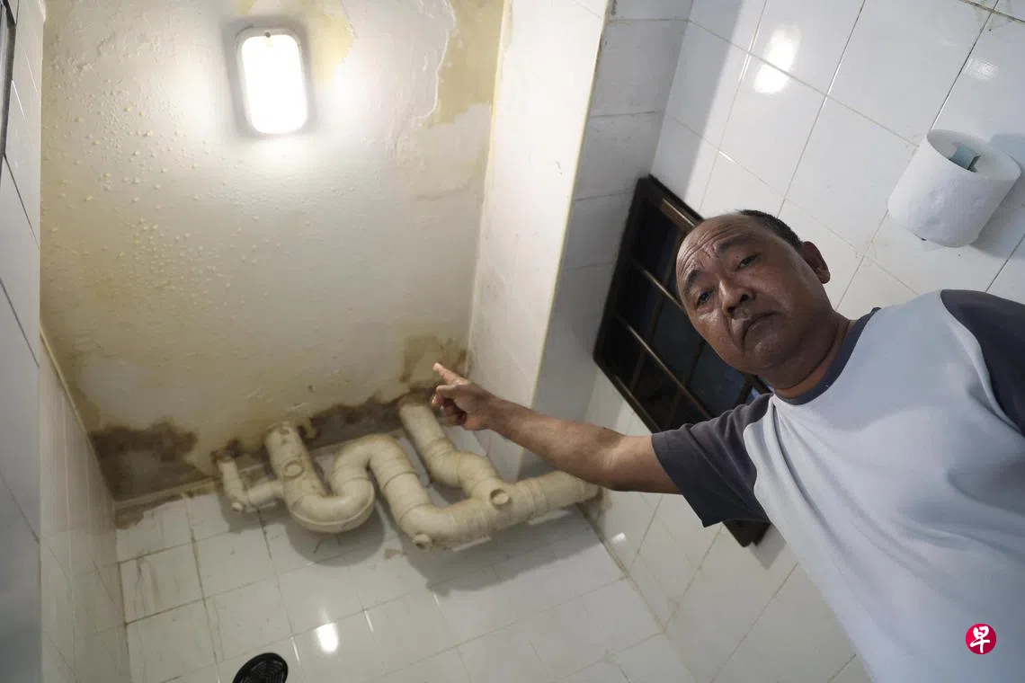 拉提夫(55岁,送餐员)住在碧山22街第293座组屋的一间四房式单位已有30多年,他告诉《新明日报》,据他了解,楼上屋主八年前将房子出租,已经移居澳大利亚,从那之后,家中厕所的天花板就出现问题。