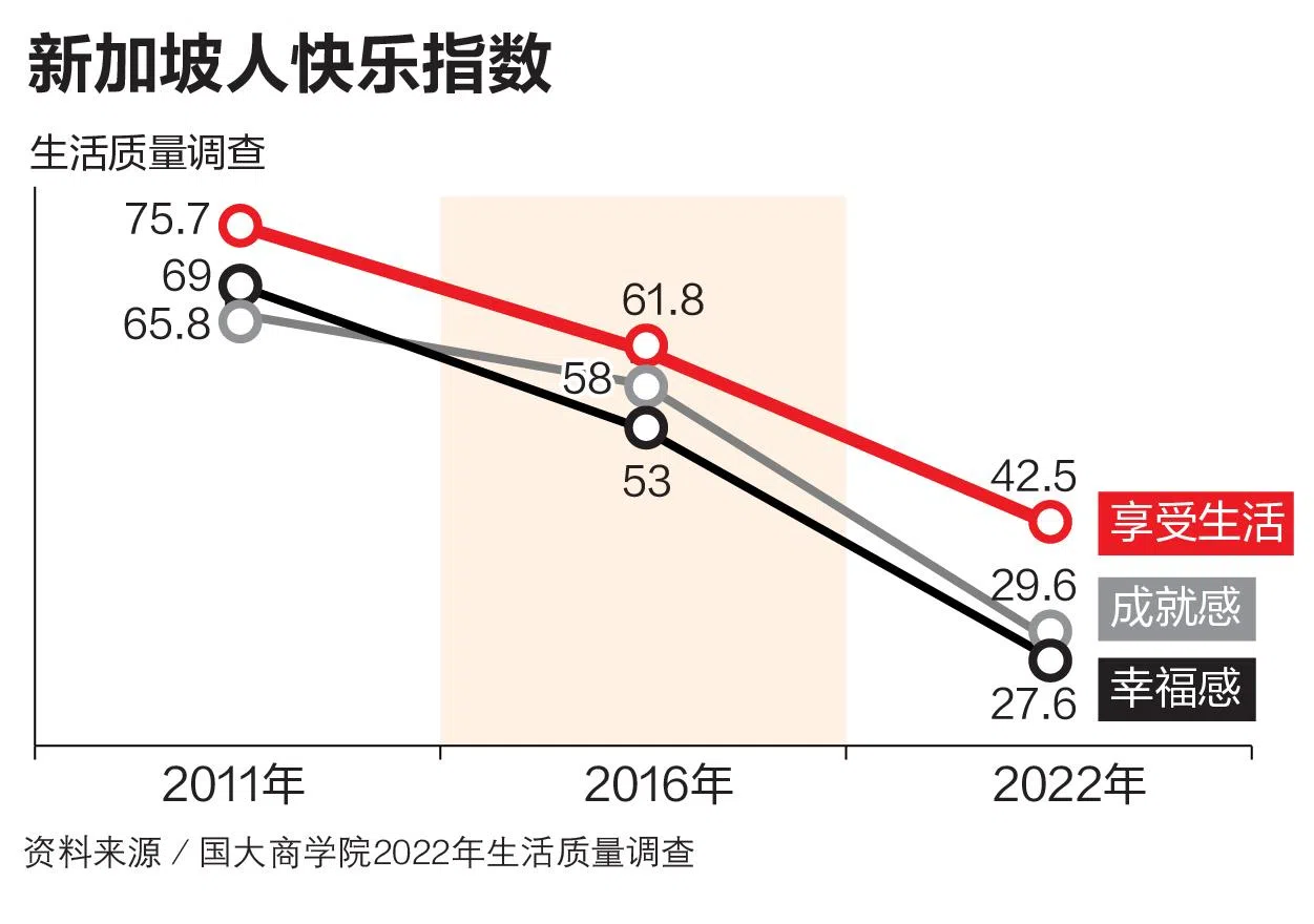 冠病疫情、全球地缘政治局势紧张、经济起伏等外在因素,令新加坡人的幸福感降低。新加坡国立大学商学院一项调查显示,国人越来越不快乐,不享受生活,成就感也降低。