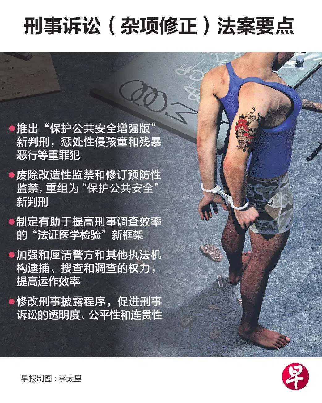 为了加强打击性侵孩童和残暴恶行等严重罪案,政府将修改法律推出新判刑严惩这类罪犯,最严重情况可终身收押,加强对公众的保护。