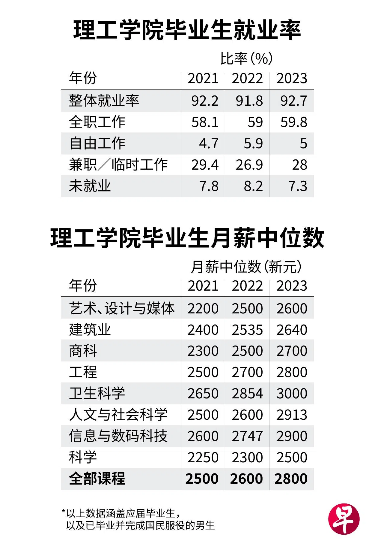 2023年理工学院毕业生就业调查显示,各学科专业文凭毕业生的月薪中位数比前两年高,当中,人文与社会科学课程毕业生的月薪中位数,攀升到第二高,达2913元,比前一年多12%。