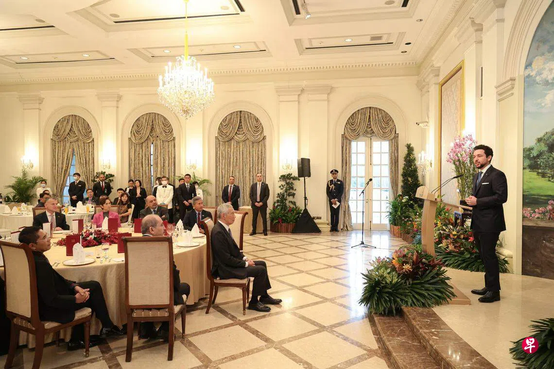 他在欢迎午宴上说,很高兴见证约旦和新加坡在一些新的领域开启合作,并期待与新加坡展开知识交流。“新加坡是令人印象深刻的现代化典范,这次的访问行程丰富而且富有成果,我期待在这些接触的基础上推动成长与进步,为建设组成未来劳动队伍的青年提供力量。”