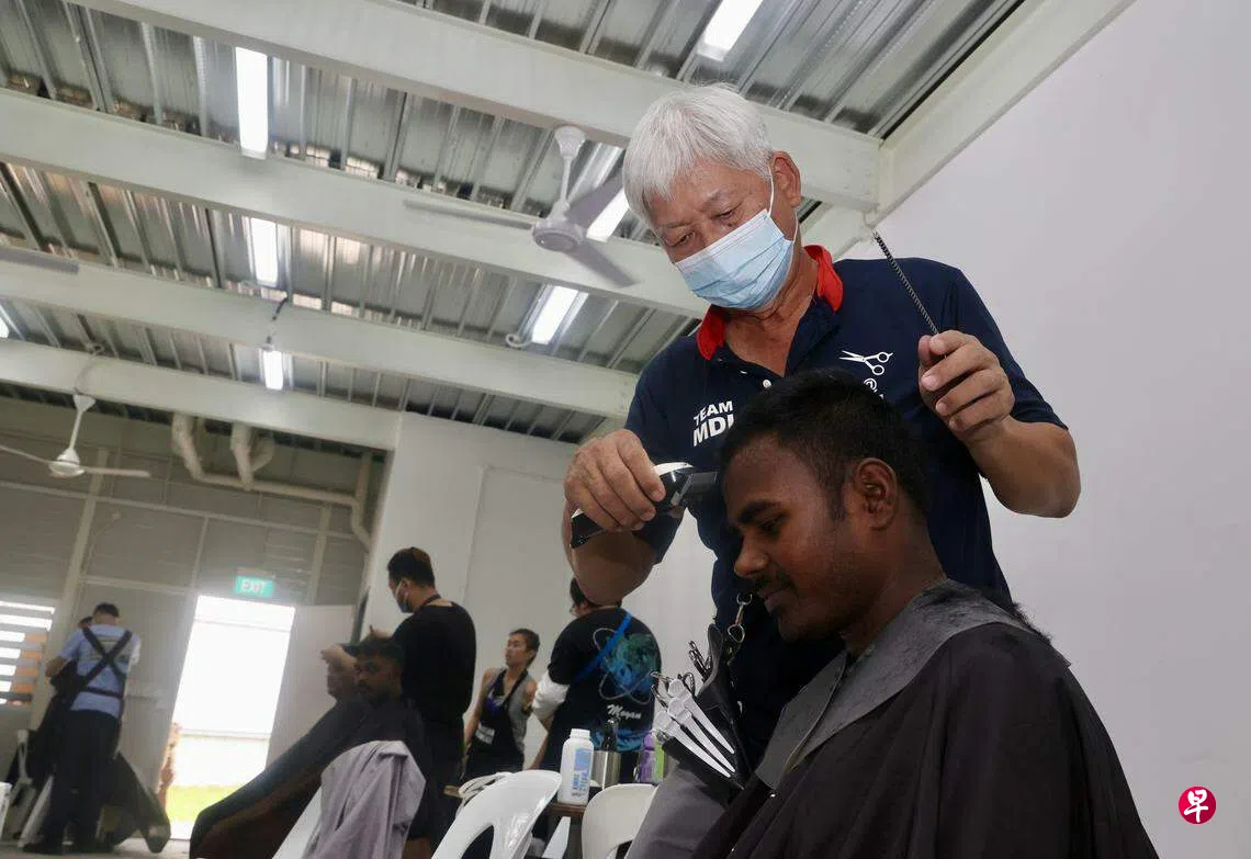 谢金树每次都会跟着义剪团队到不同地方帮忙理发,包括老人院、乐龄中心、临终关怀中心、客工宿舍等,有时候一个星期可参于多达五次义剪。