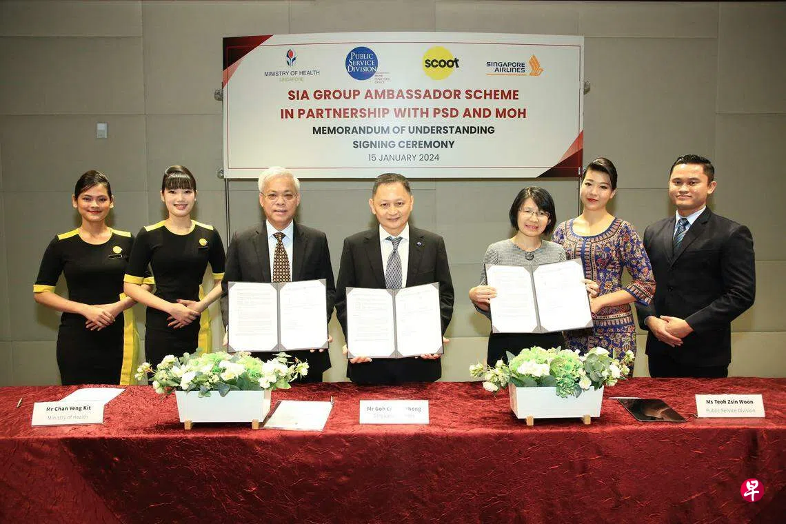 卫生部、公共服务署和新航集团星期一(1月15日)发布联合文告,宣布签署谅解备忘录。备忘录由卫生部常任秘书陈英杰、公共服务署(发展)常任秘书张静文,以及新航集团总裁吴俊鹏签署。