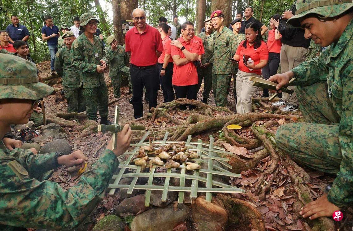 正在文莱进行国事访问的尚达曼总统,星期四(1月25日)下午到淡布隆,视察新加坡武装部队见习军官的野外求生训练。