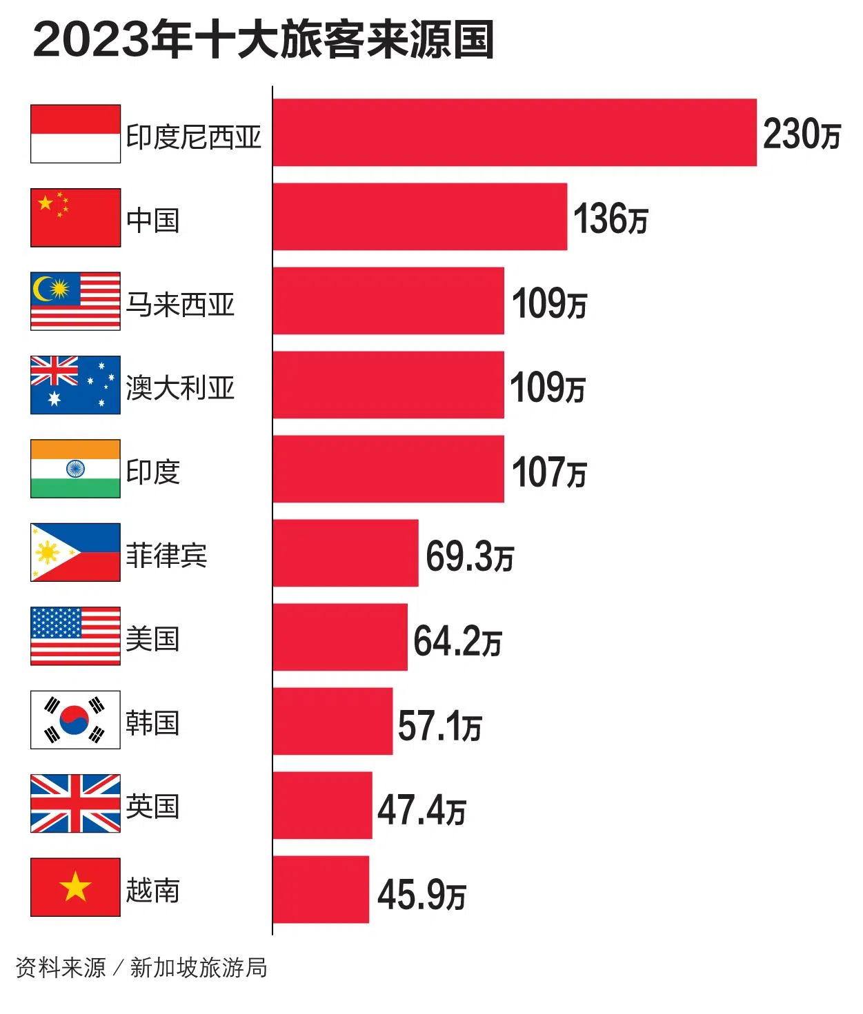 数据显示,去年来自印度尼西亚的访客最多,共230万人次;其次是中国,共136万人次;第三是马来西亚和澳大利亚,各达109人次;第四是印度,共107万人次。