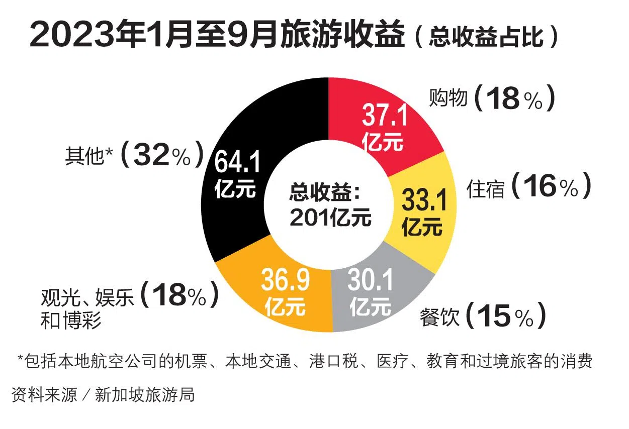 如果不包括观光、娱乐和博彩业收益,而只看购物、住宿、餐饮和其他旅游消费,来自中国、印尼和澳洲旅客的旅游收益最多,共占总收益额约30%。这三个客源地中,来自中国旅客的收益最多,达23.27亿元。