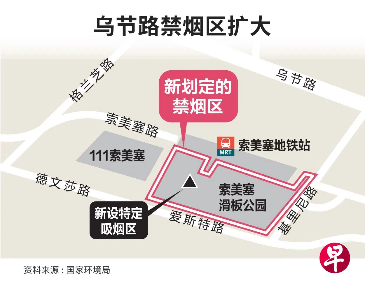 国家环境局调整乌节路禁烟区范围,靠近111索美塞的索美塞地铁站出口一带即日起列为禁烟区。