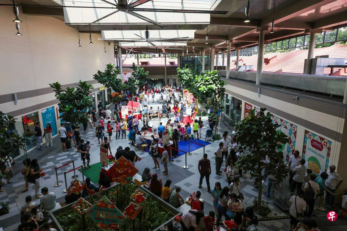 在软性特色方面,购物中心内保留了标志性的土生华人(Peranakan)元素,同时配合怀旧主题,特别设置了以色彩缤纷的店屋和观赏鸟为背景的拍照打卡点。二楼还设了以甘榜为主题的游乐场,让孩童玩乐,也让大人怀旧。