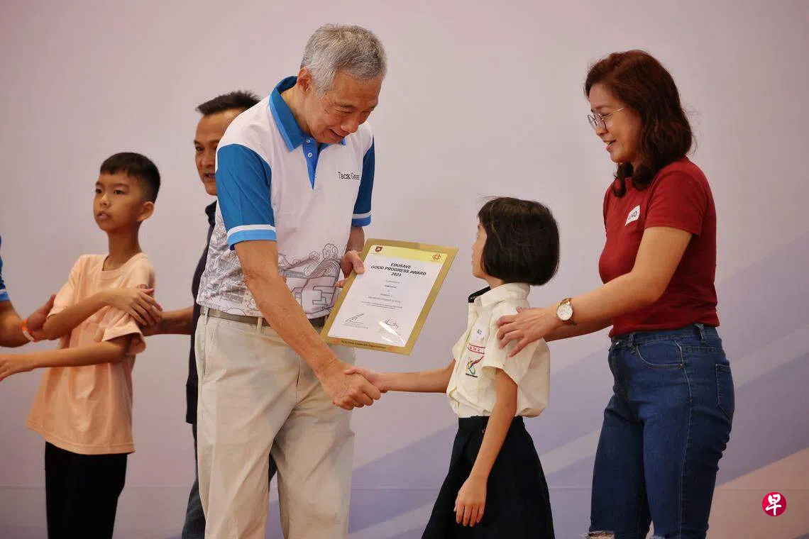 李总理也是负责德义区事务的宏茂桥集选区议员,他星期六(2月3日)出席在德义小学举行的宏茂桥德义区教育储蓄奖励金颁奖礼。星期六和星期天(4日)分别举行三场颁奖礼,每场有约140名学生领取奖励金。