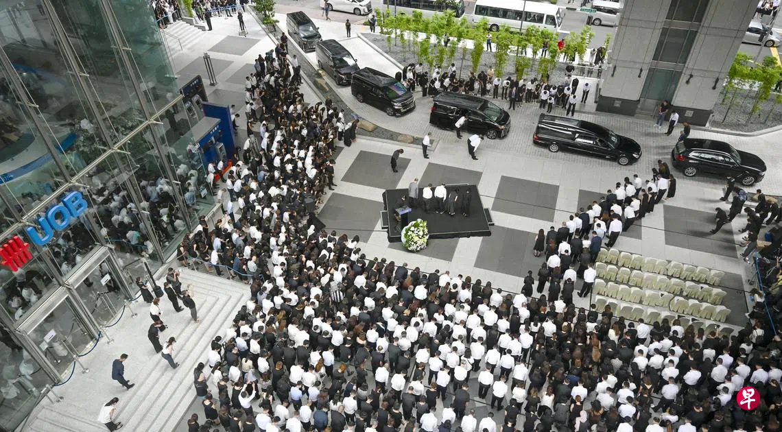 已故新加坡银行界泰斗、华社领袖黄祖耀星期三(2月7日)出殡,约千人聚集在大华银行广场中庭,向他致以最后的敬意。