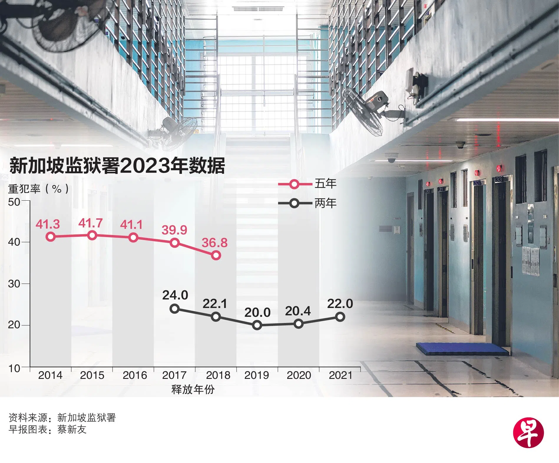 新加坡的两年重犯率在国际上保持低位,但2021年的两年重犯率升至22%,比之前一年的20.4%增加1.6个百分点,主要因为嗜毒者的重犯率上升。