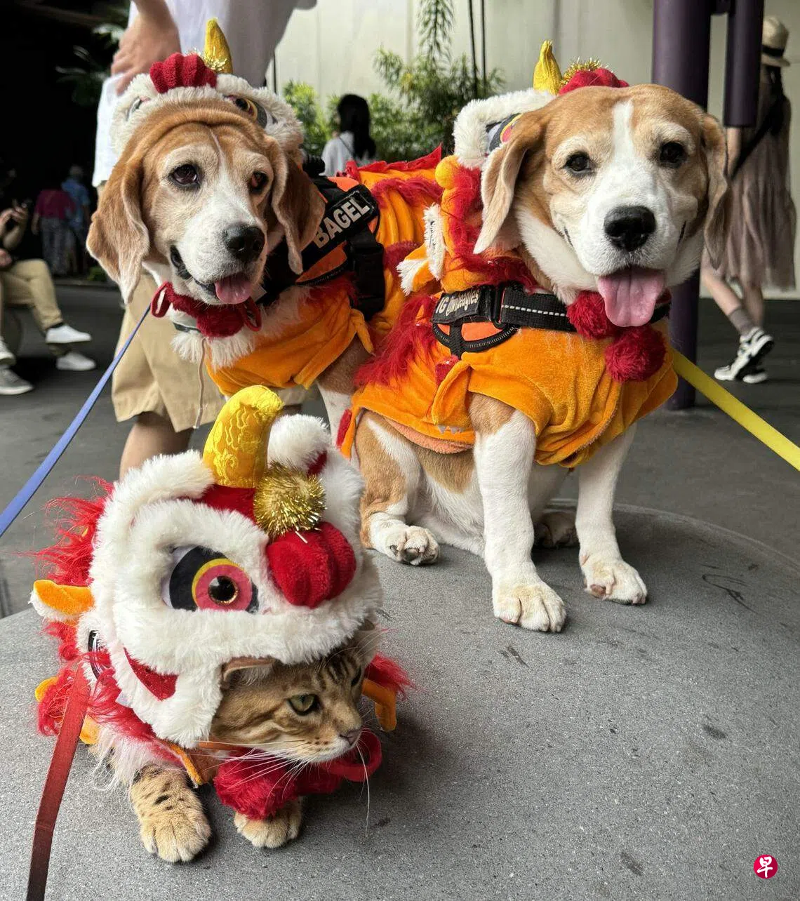 带宠物猫散步,在本地不算很常见。李建金和家人大年初二(2月11日)让猫狗穿上舞狮造型的服装游园,它们喜气洋洋又可爱的模样,让不少游人想伸手抚摸它们。为避免宠物的皮肤敏感,李建金总会提醒人们只能欣赏切勿触摸。